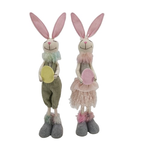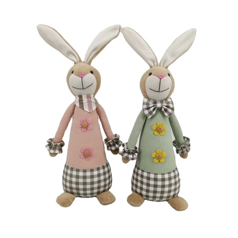 Figura de conejo de Pascua de felpa hecha a mano, adorno decorativo de pareja con huevo, vacaciones de Pascua